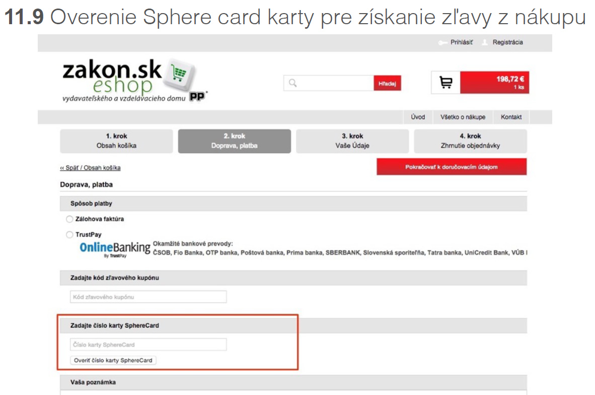 V nákupnom procese môže návštevník stránky využiť zľavovú kartu