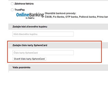 Overenie Sphere card karty pre získanie zľavy z nákupu