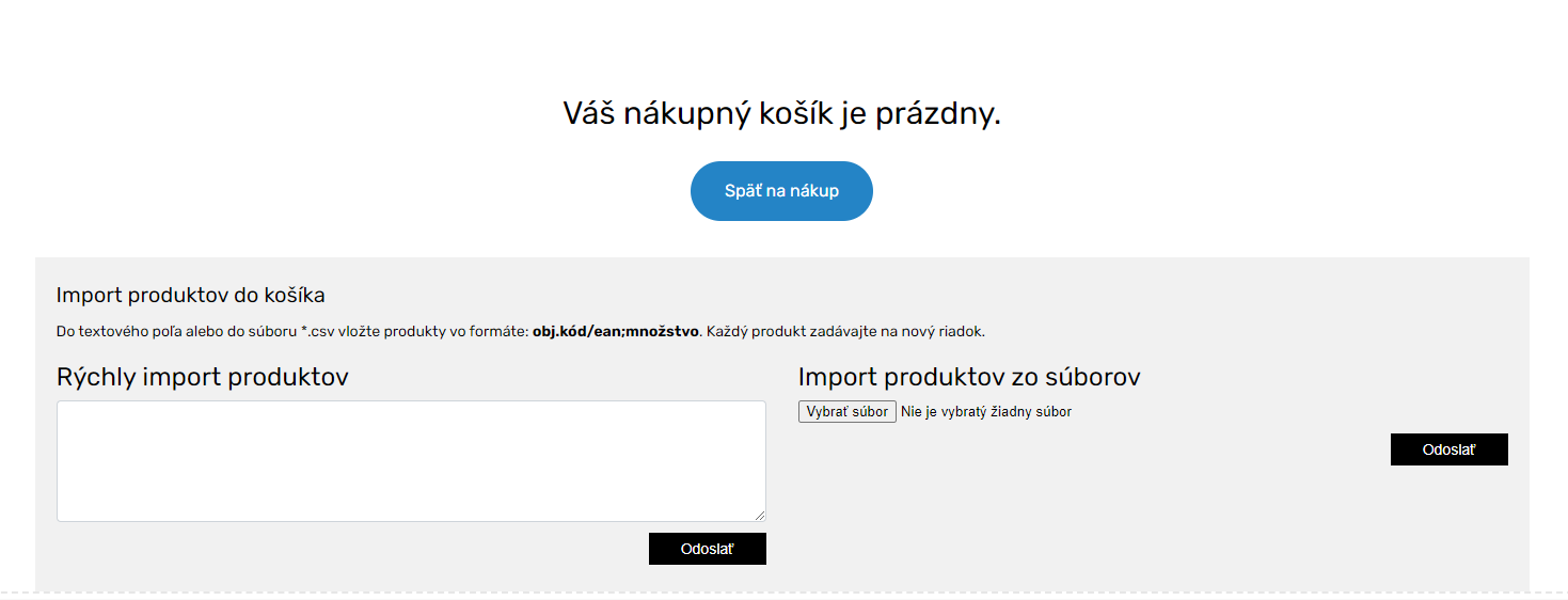 Zákazníkovi sa zobrazí modul (viď. obr. 2-5NX) v prvom kroku nákupného procesu, kde môže zrýchlene vložit zoznam produktov, ktoré chce objednať.