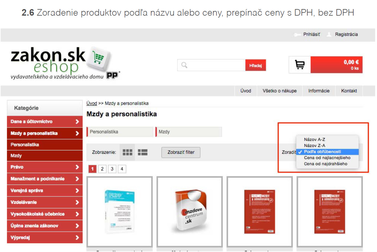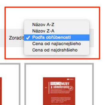 V kategóriách obchodu si môže návštevník stránky zoraďovať produkty podľa