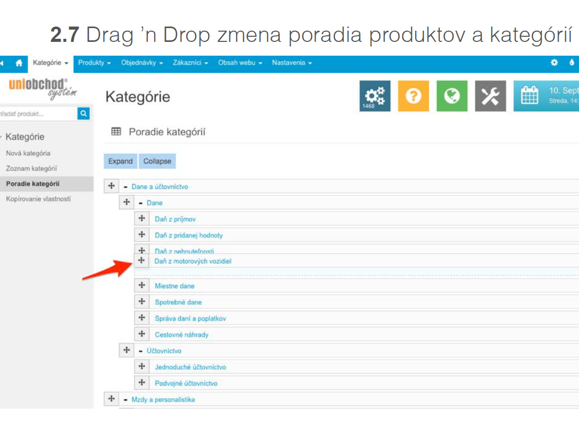 jednoducho a rýchlo meniť poradie kategórií (produktov) alebo stromovú štruktúru