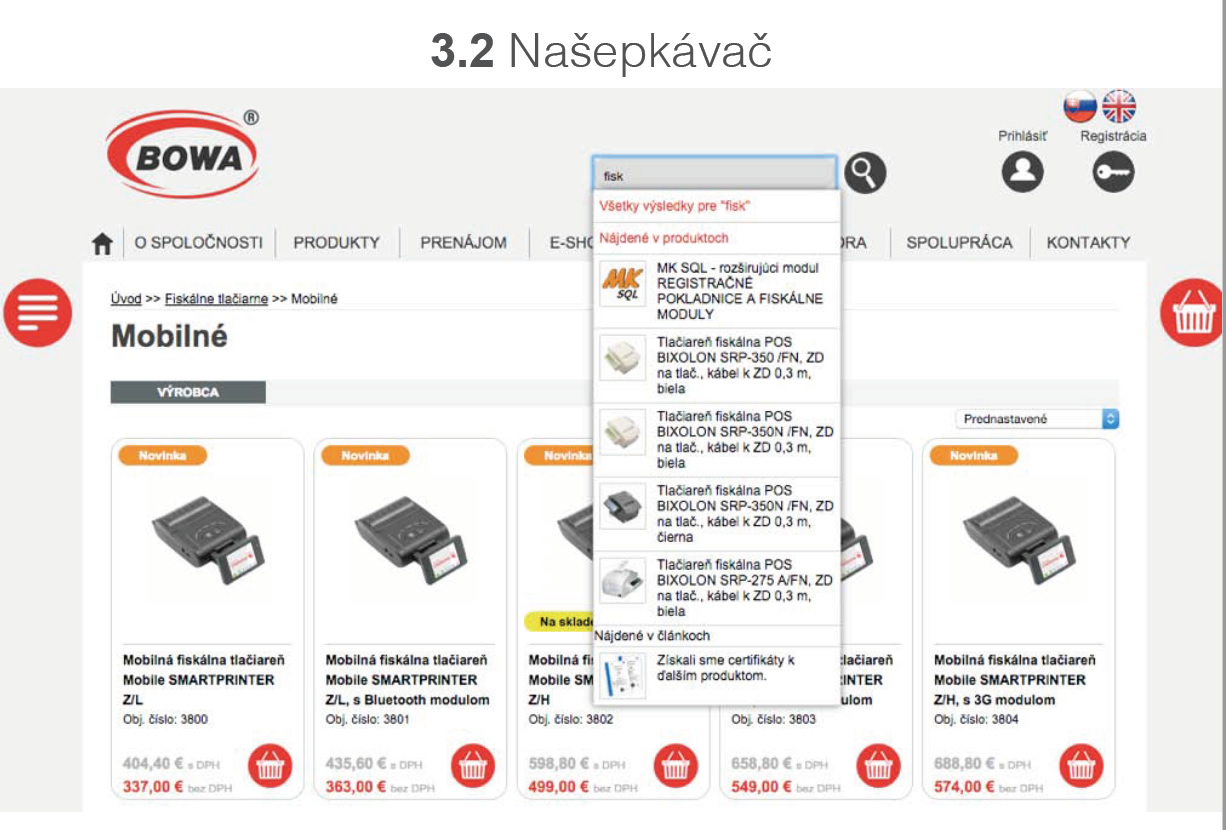 Pri písaný hľadaného výrazu vo vyhľadávači, sa zobrazujú v
