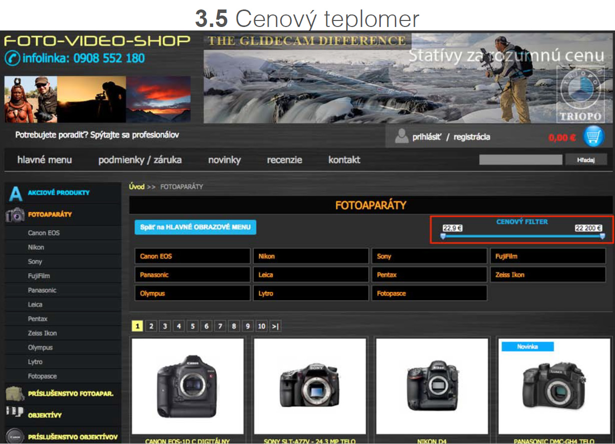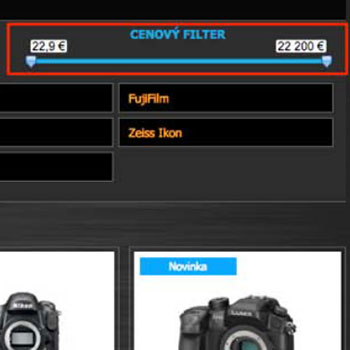 Filtrovanie produktov podľa cenového rozpätia.