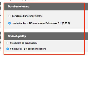 Napr.: Pri doručení poštou alebo kuriérom je možnosť zaplatiť