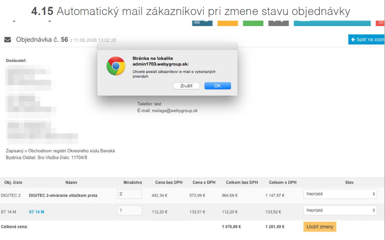 Automatické zaslanie emailu o zmene stavu objednávky.