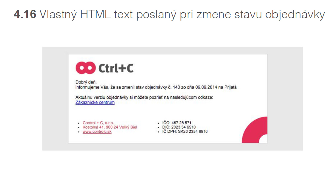zmenou stavu objednávky môžu byť administrátorom použité HTML