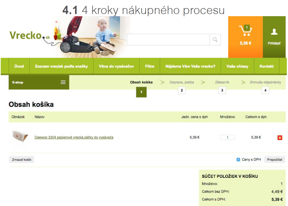 Pre dokončenie nákupu zákazník prechádza 4 krokovým nákupným