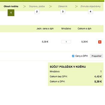 1.V prvom kroku sa nachádza zhrnutie obsahu nákupného košíka.