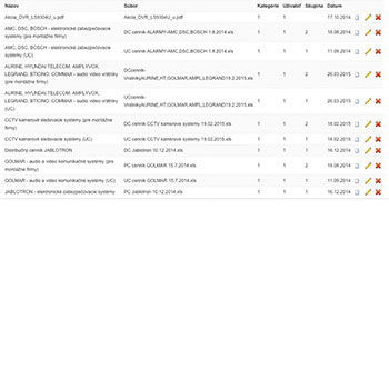 vystavené faktúry, manuály k produktom, cenníky výrobcov a pod.