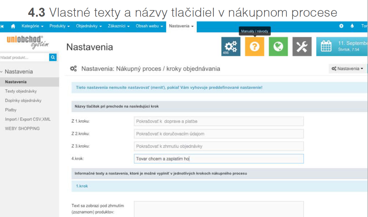 Administrátor obchodu má možnosť si upravovať a prispôsobovať