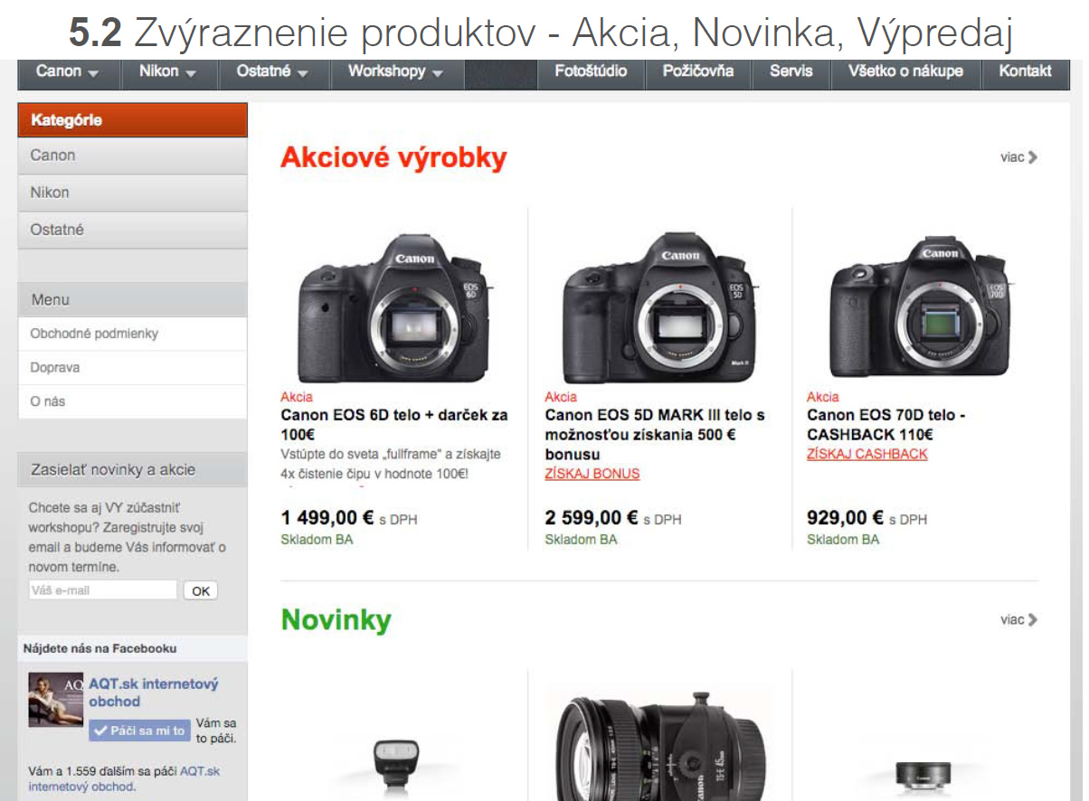 Označovanie produktov ako Akcia, Novinka a Výpredaj.