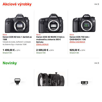 Na úvodnej stránke obchodu je možné zobrazovať produkty ktoré sú