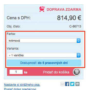 ňom nákupný košík. Alebo ak tovar nieje na sklade tovar sa môže