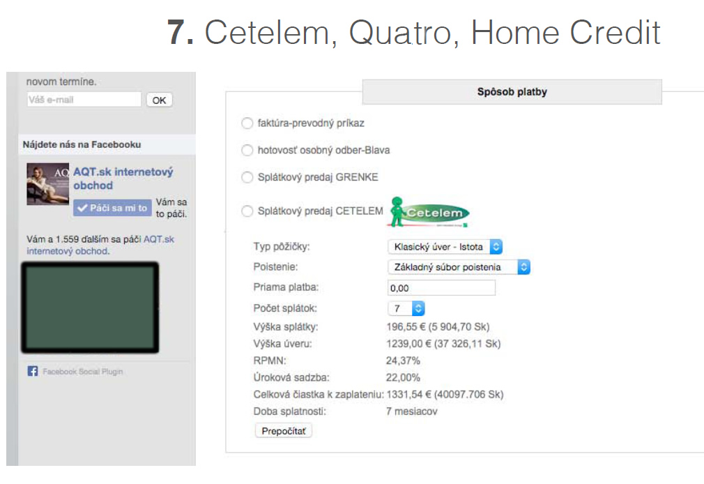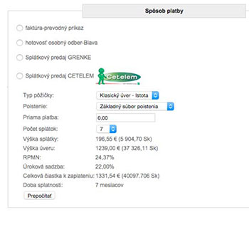 Nastavenie spôsobu platby formou pôžičky cez nebankovú spoločnosť Cetelem.
