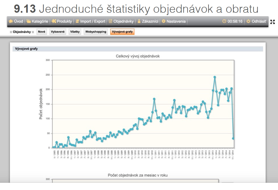 štatistiky výkonnosti obchodu z pohľadu počtu objednávok a za