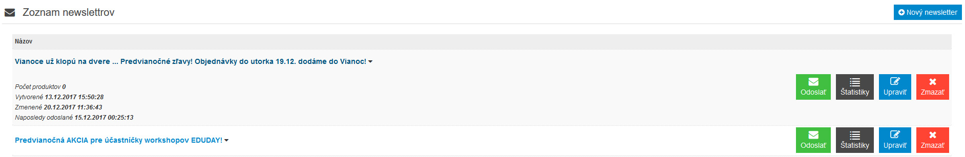 Odoslanie newslettru - okamžité odosalnie, odoslanie vo vopred zadefinovaný deň a hodinu.