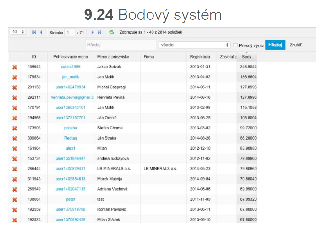Administrátor vidí v časti so zákazníkmi počet bodov ktoré už
