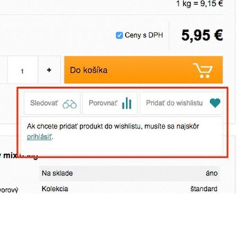 pri každom produkte má možnosť zaradiť produkt do vybraného
