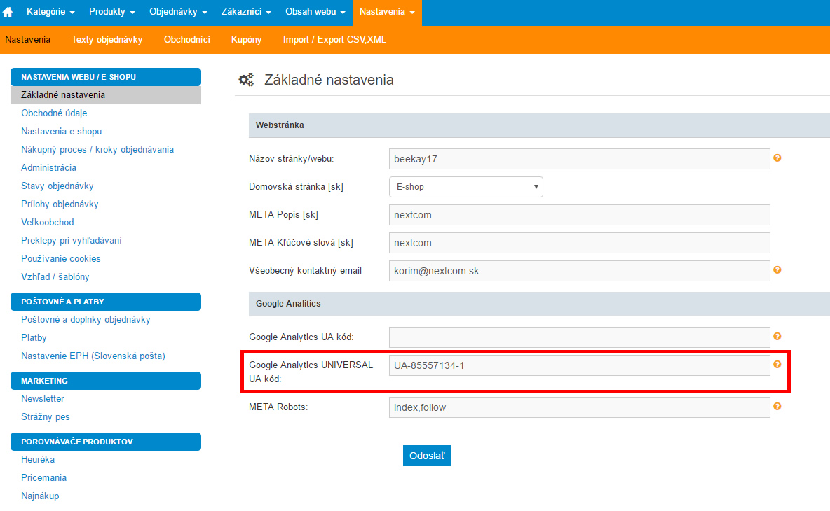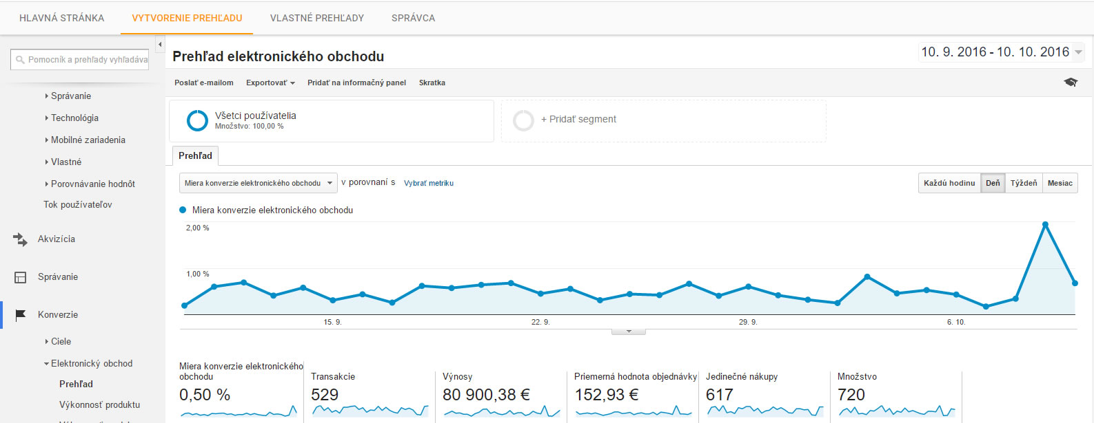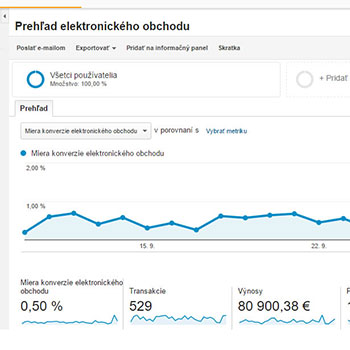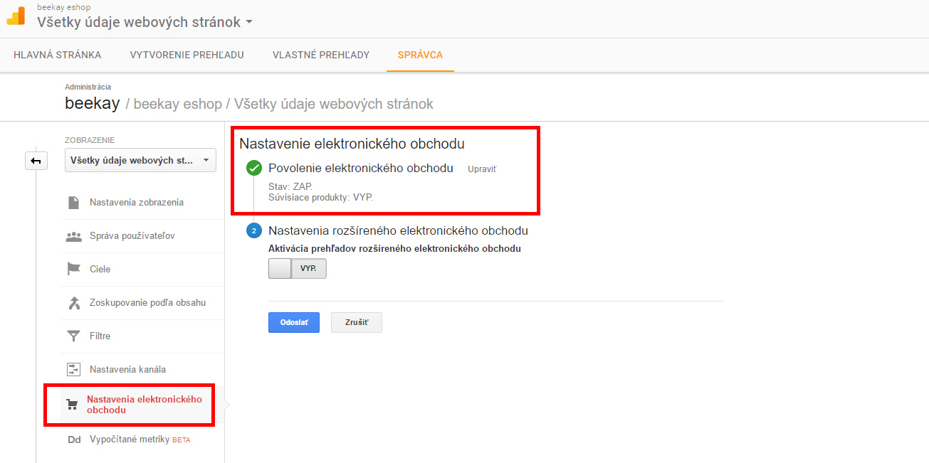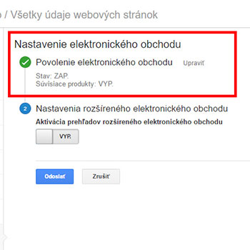 Aktivácia elektronického obchodu v prehľadoch, google analitics.