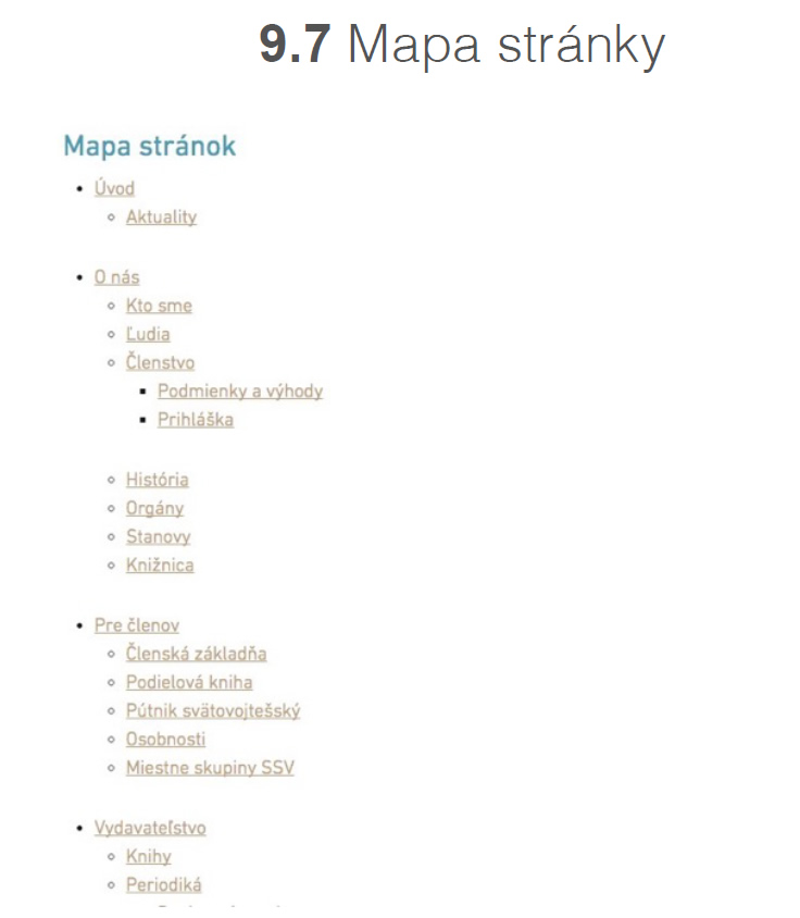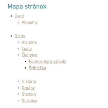 Mapa stránky obsahuje zoznam všetkých stránok webu.