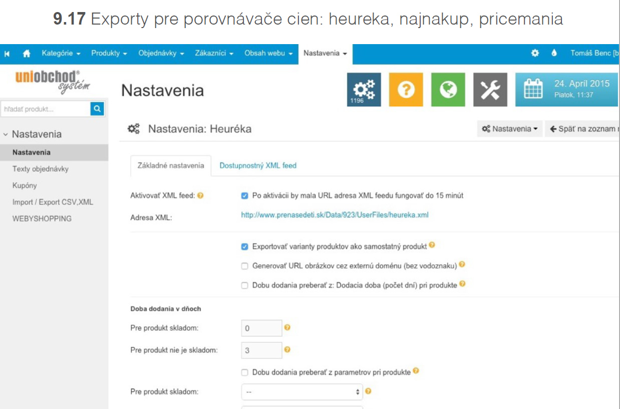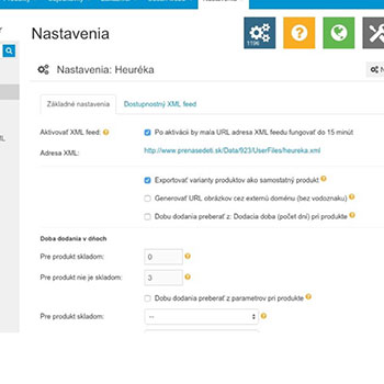 nastaviť si exporty produktov pre porovnávač pricemania.