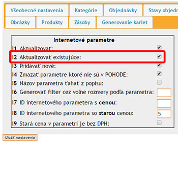Aktualizácia internetových parametrov, ktoré sú už vytvorené a naimportované na E-shope.