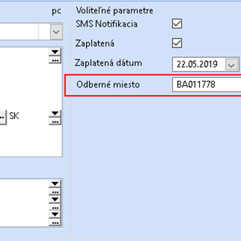 Prijatej objednávke z e-shopu sa vyplnené odberné miesto prenáša do voliteľného parametra v sekcií v POHODE alebo do dodacej adresy do políčka oddelenie.