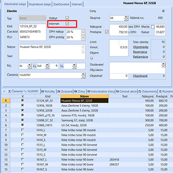 Len označené skladové karty s príznakom „Internet“ v POHODE sa zobrazujú v E-shope.